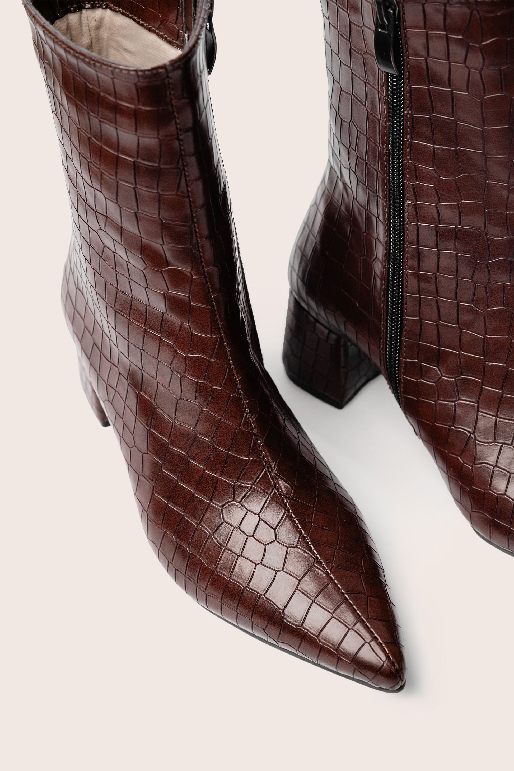A refined ankle boot with a sleek silhouette and a balanced heel, designed for effortless elegance from day to night. Clean lines and a sharp profile give it a polished look that elevates both tailored and casual outfits. A timeless essential with a modern edge.